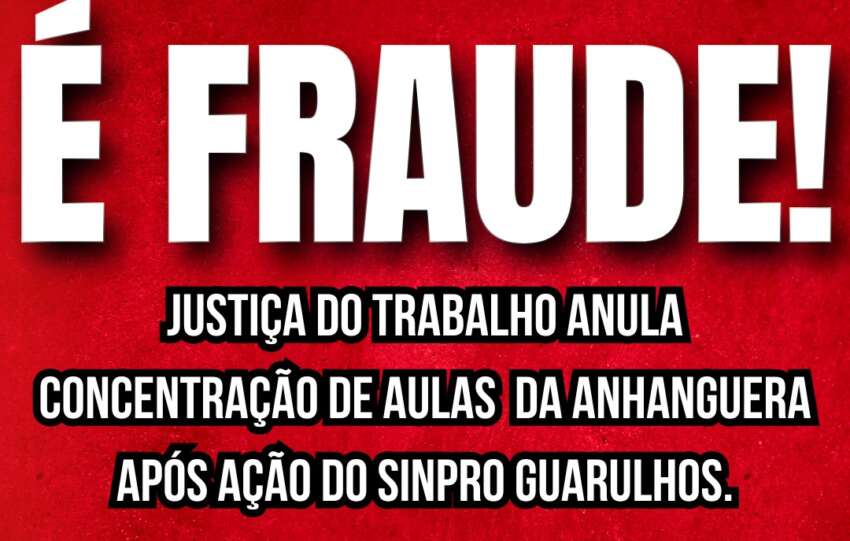 CONCENTRAÇÃO DE AULAS É FRAUDE, DECIDE A JUSTIÇA DO TRABALHO QUE DETERMINA ANULAÇÃO DO ACORDO QUE LESAVA PROFESSORES DA ANHANGUERA