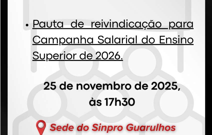 25 de novembro de 2025 às 17h30 na Sede do Sinpro Guarulhos