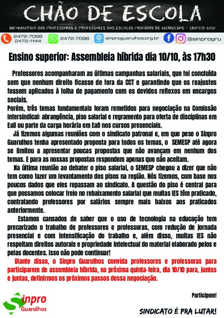 Ensino Superior: Assembleia híbrida dia 10/10, às 17h30